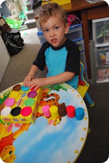 While Mack napped today, Sean & I took out the playdoh. We had fun.